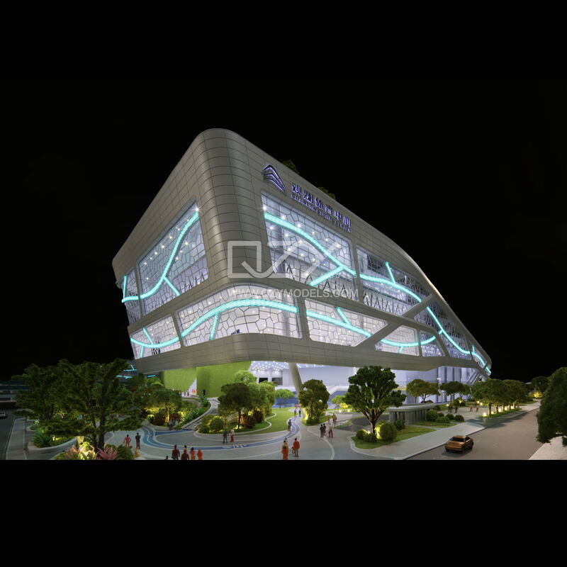 Every inch of this model bears the hallmark of QZY’s handcrafted excellence, with artisans pouring hundreds of hours of meticulous labor into translating the sports center’s bold, fluid architectural language into a tangible, hyper-realistic miniature. The building’s iconic fractured-glass facade, a defining feature of the real-world structure, was recreated by QZYModels’ team using a hybrid of laser cutting and hand-finishing: each geometric glass panel was precision-cut from ultra-thin acrylic sheets, then individually hand-polished to achieve the subtle light refraction of real glass, before being set into a hand-assembled steel framework that mirrors the complex, organic lattice of the original structure. The model’s integrated LED lighting system, which illuminates the facade with ethereal cyan glows, was hand-wired and concealed within the model’s core by QZY’s technicians—with over 500 micro-LED bulbs placed at exact 1:100 scale intervals, ensuring the lighting effect perfectly mimics the dramatic ambiance of the actual sports center at night.